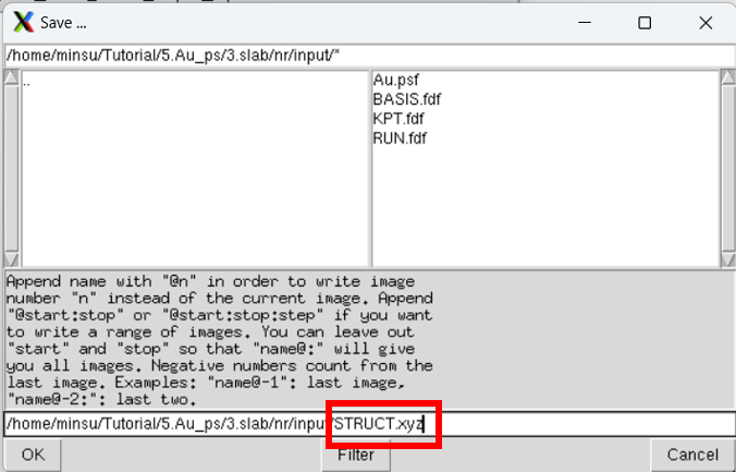 File-Save를 눌러 원하는 directory에 STRUCT.xyz 로 저장하면 파일이 생성된다.
