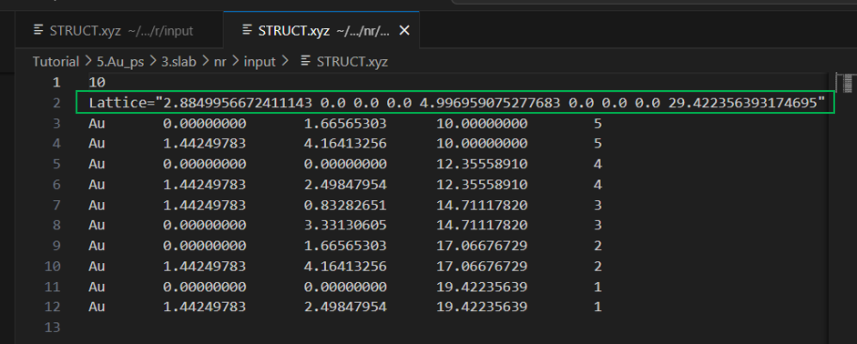 생성된 STRUCT.xyz에는 Cell 정보가 vector 좌표로 표현되어 있으므로,