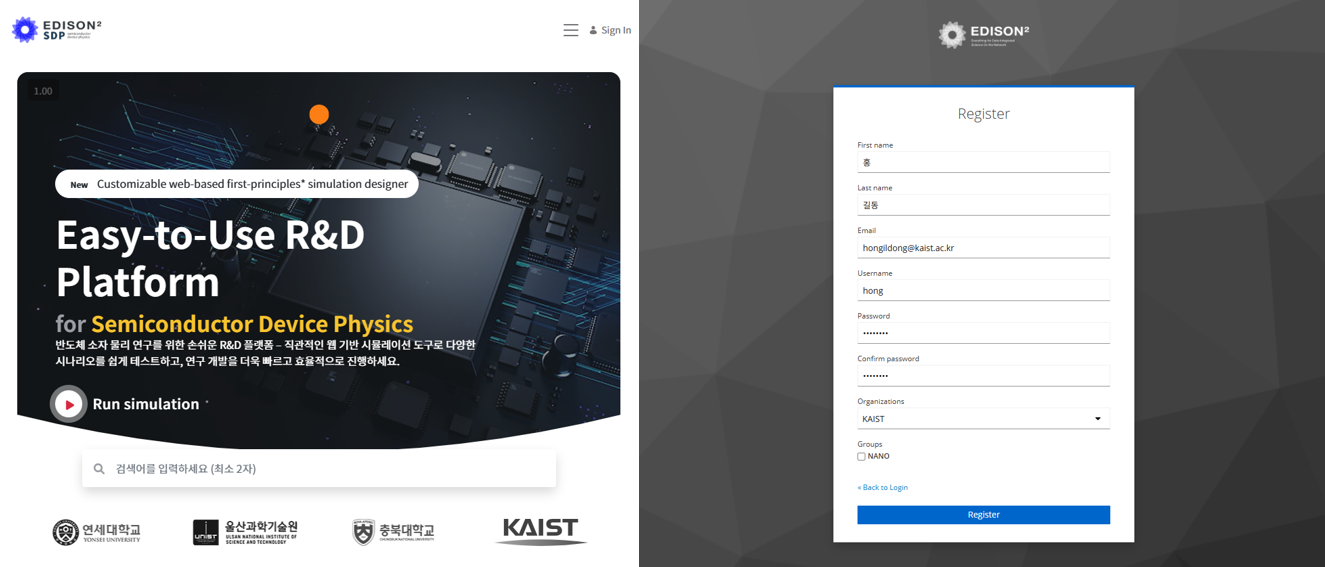 NanoR&D EDISON 포털에서 Jupyter Notebook 기반 실습(ATOM, SIESTA)을 진행하려면 먼저 EDISON 계정이 필요하다.