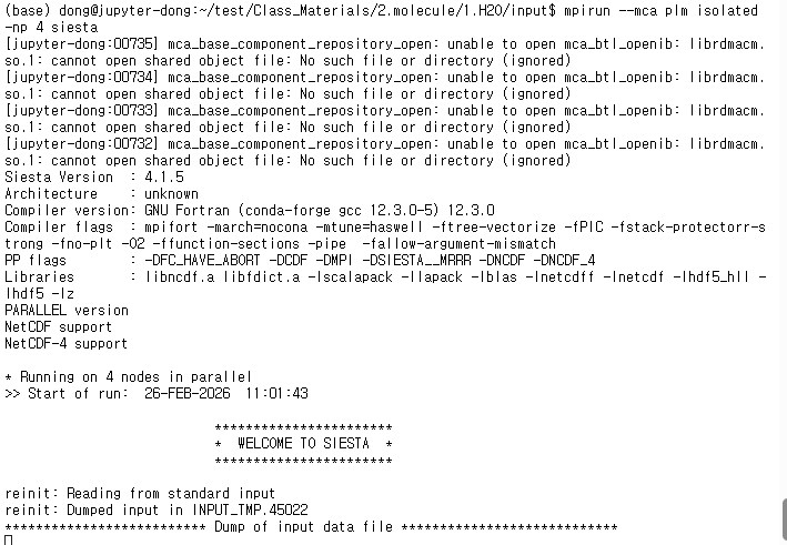 아래 명령어를 통해 SIESTA 설치가 잘 완료되었는지 확인해보자.