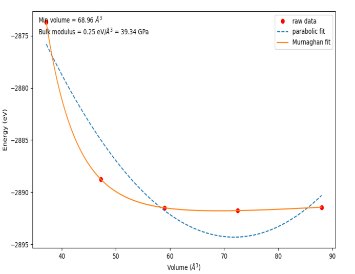 murnpars, ier = leastsq(objective, x0, args=(Etot, Cell_volume))