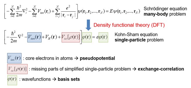 이러한 Kohn-Sham DFT (Density Functional Theory)은 화학적 및 재료특성을 예측할 수 있는 가장 널리 사용되는 전자구조 이론이며, 대표적인 프로그램으로는 SIESTA가 있다.