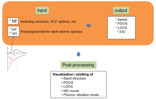 Input 파일은 .fdf( RUN.fdf , STRUCT.fdf , KPT.fdf , BASIS.fdf ) 와 .psf 가 필요하다.