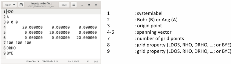 input_rho2xsf.txt 안에는 현재 계산 파일 이름과 맞아야 하는 항목이 있을 수 있으므로, 실행 전에 한 번 열어서 확인하는 편이 안전하다.
