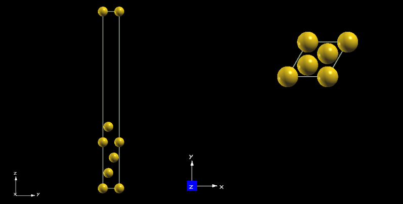 위의 코드를 실행시키면 vacuum의 길이가 20Å이고, Au가 5층 으로 쌓인 Au slab모델을 생성할 수 있다.