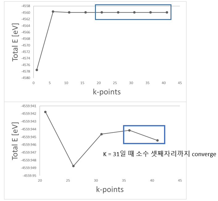 K-point를 이런 방식으로 찾아보면 [35, 35, 1]일 때 소수 셋째자리까지 converge하는 것을 확인할 수 있다.