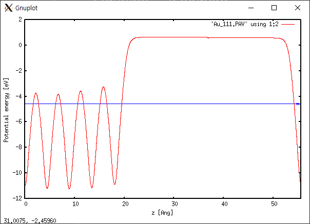 set xrange [0 : 55.58547] // Au_111 모델의 z lattice 크기[bohr]