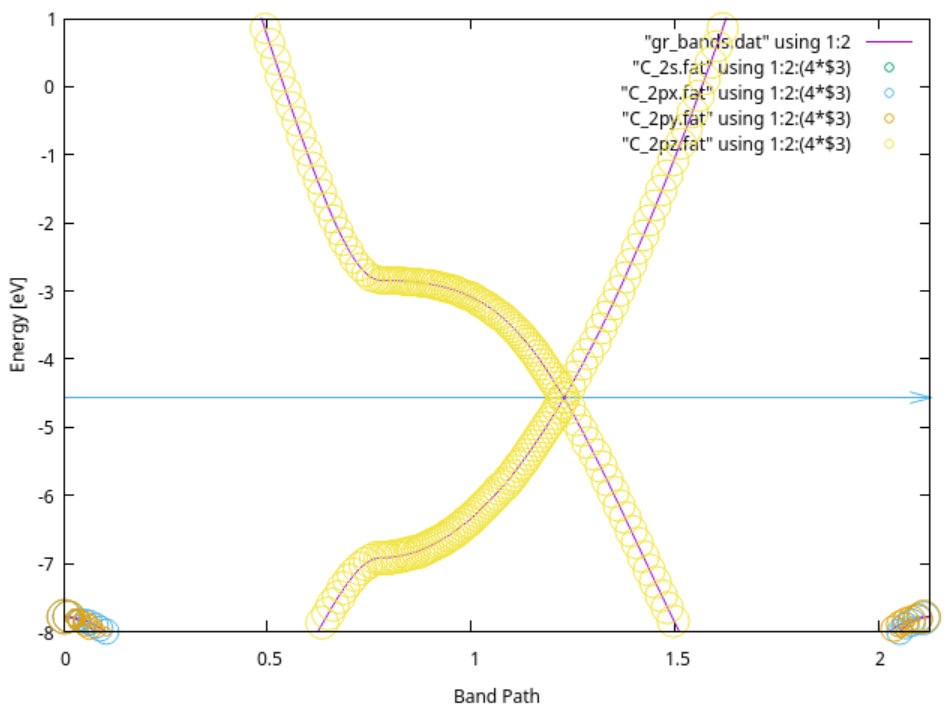 $ ./eigfat2plot Graphene.fatbands_C_2pz.EIGFAT > C_2pz.fat