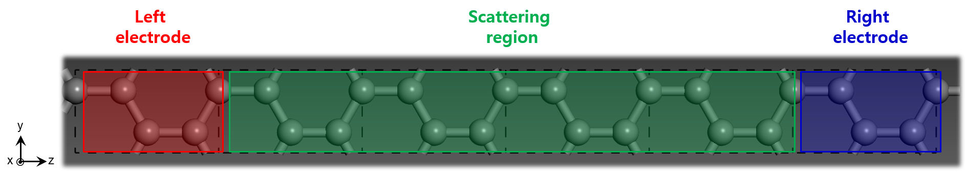 Electrode에 대해 DFT 계산을 통해 elec.TSHS 를 얻는다. 우리의 모델의 경우 x축 방향으로 periodic 구조를 가지지 않는다. 때문에 x방향으로의 k-point를 1로 지정해주었다. Eleectrode 계산 시에 사용된 k-point가 추후에 scattering 계산을 통한 양자수속 특성 계산의 정확도 큰 영향을 미치기 때문에 반드시 k-point에 대해 수렴성 테스트를 진행해야한다. 특히 양자 수송 방향(z-축)으로 더욱 엄격히 k-point를 주어야 보다 정확한 전극의 self-energy를 얻을 수 있다.