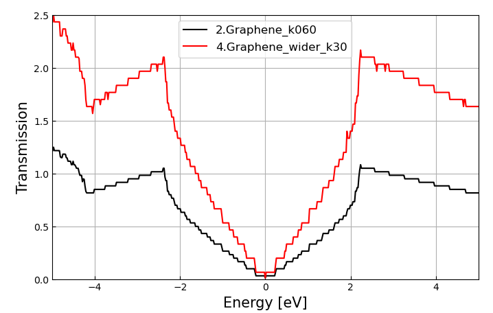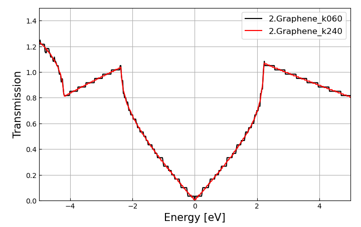 k-point를 증가시키자 transmission 그래프가 매끄러워진 것을 확인할 수 있다.