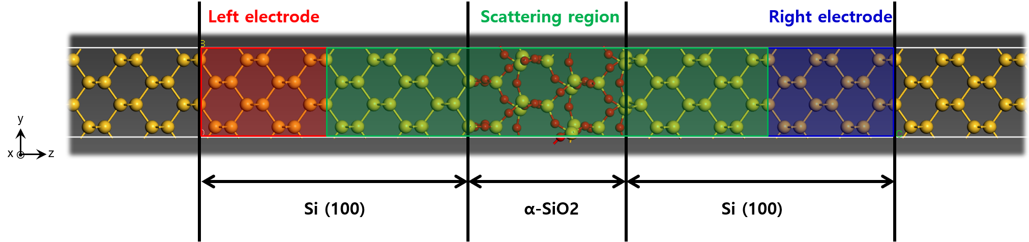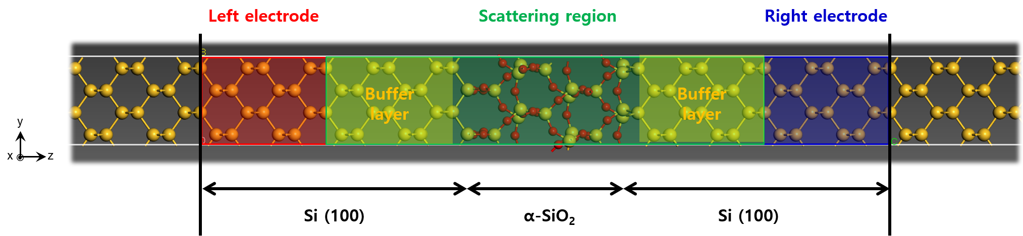 Si-SiO2-Si junction model을 이용하여 buffer layer 테스트를 진행한다.