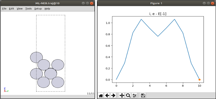 To execute ML-NEB, catlearn and ASE are needed which we mentioned above. The following python script(neb-catlearn.py) gives a basic concept of how it works.